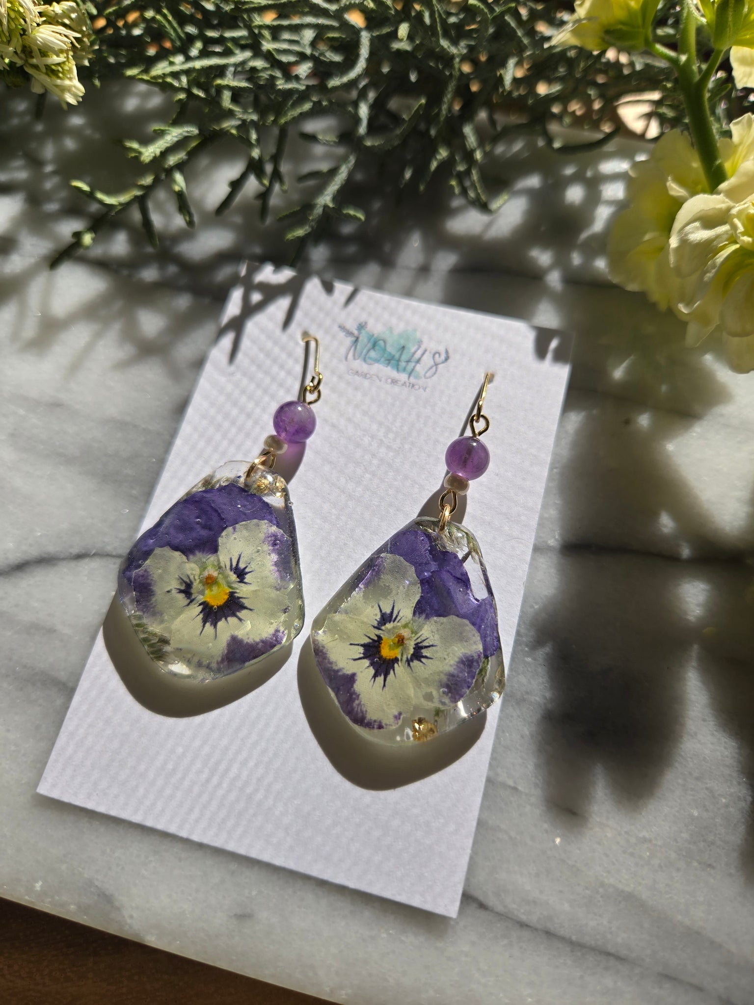 Garden viola earrings