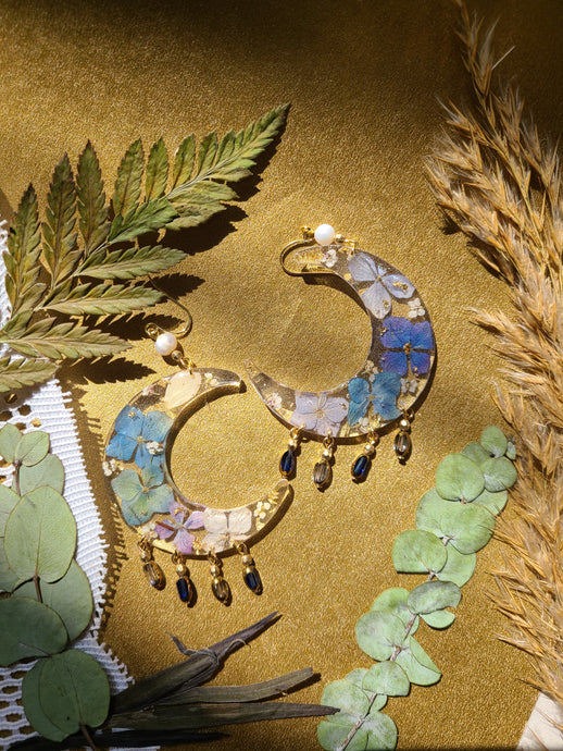 Fall Collection- Vintage Glass beads, hydrangea, moon earrings