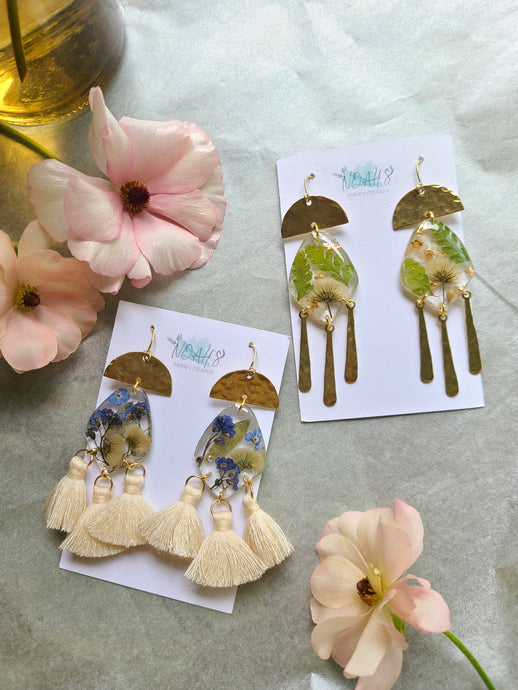 Mother's Day Collection- ferns and forget-me-nots, tassel earrings
