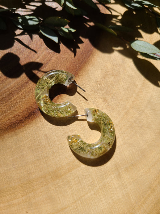 Flower Hoop Collection- Everyday Thin Hoops, Ferns and Queen Ann's Lace