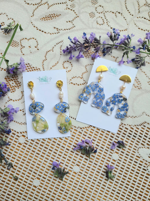 Forget-me-not: Spring collection Blossom dangles, freshwater pearl, Golden accents