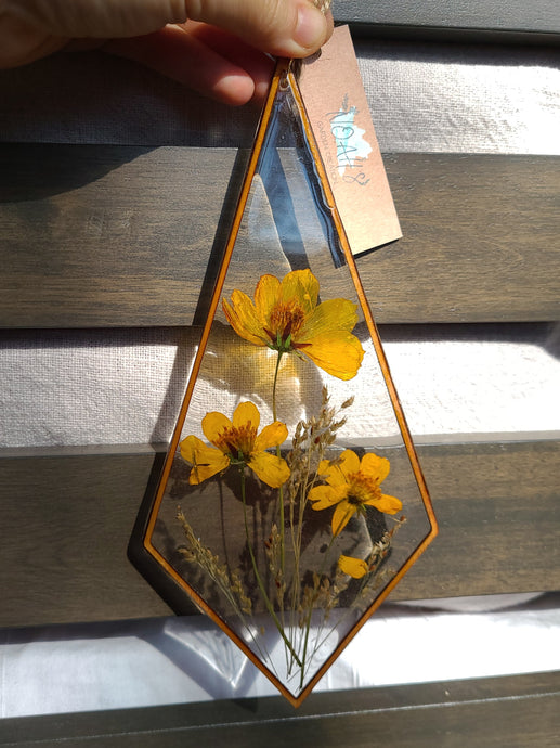 Wall Decor- Unique wooden frame, diamond shaped, real pressed flowers