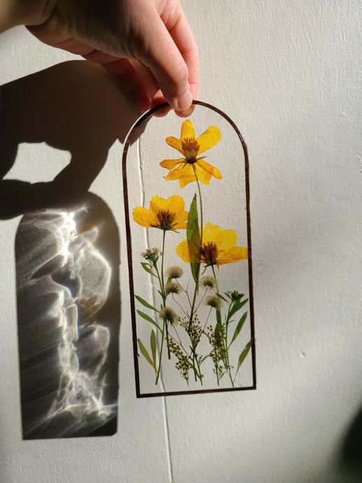 The Golden Coast Wall Decor- Unique wooden frame, real pressed flowers