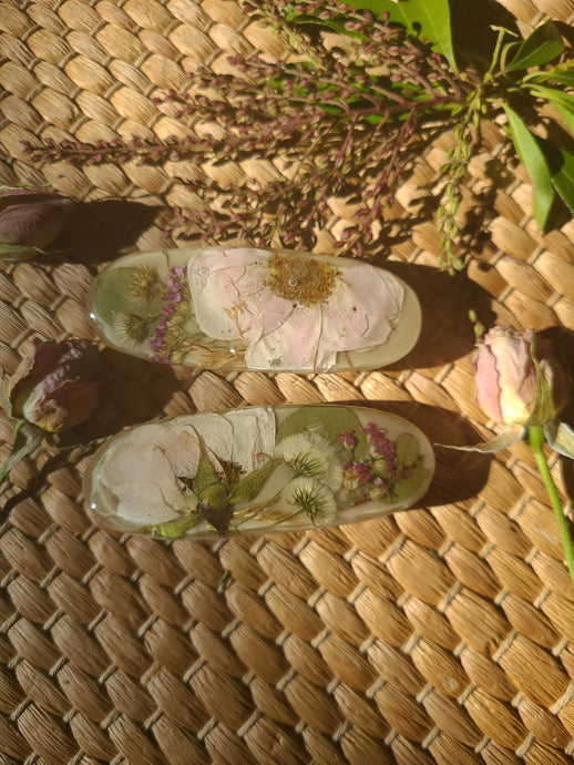 Fall Collection - Large Rose 3 inch barrettes, real pressed flowers in resin, French auto-lock, taupe background