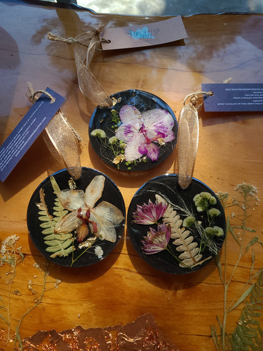 Holiday Ornament- California Coast with pressed poppy