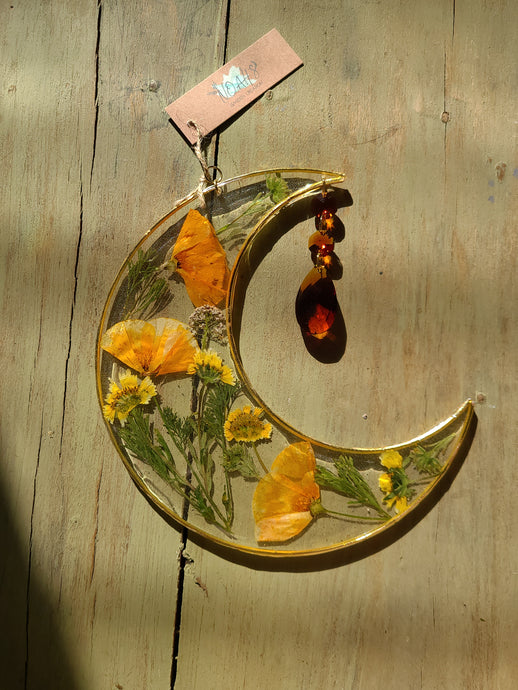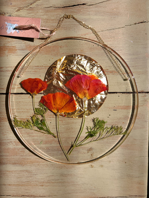 Large California Poppy Resin wall hangings, 8 inches, amber crystal, clear background, california wildflower