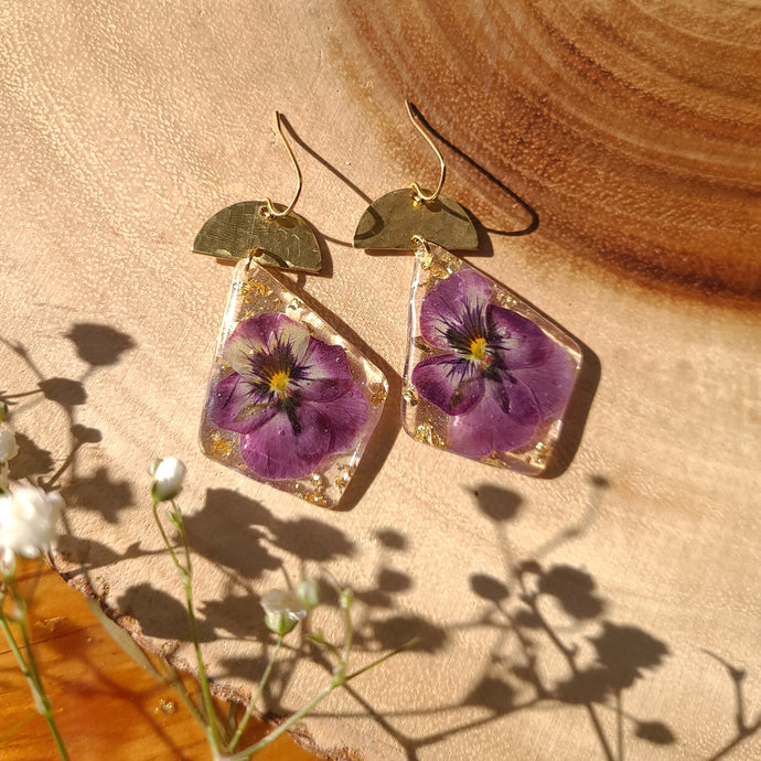 Fern dangles, real pressed flower in resin, bohemian statement earring
